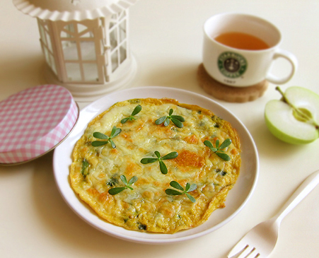 4.在蛋饼上撒上一层奶酪丝,放入烤箱,上火烤至奶酪融化上色就好。