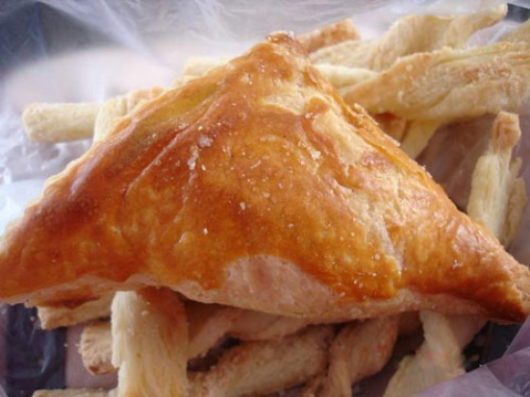 Samoosas咖喱角——这种三角形的开胃饼是印度南非人对世界饮食的贡献。其馅既可以是辣椒沫,也可是多种蔬菜的混合物。这是一种适合边走边吃的食品,当刚出锅的时候,真是香气扑鼻。