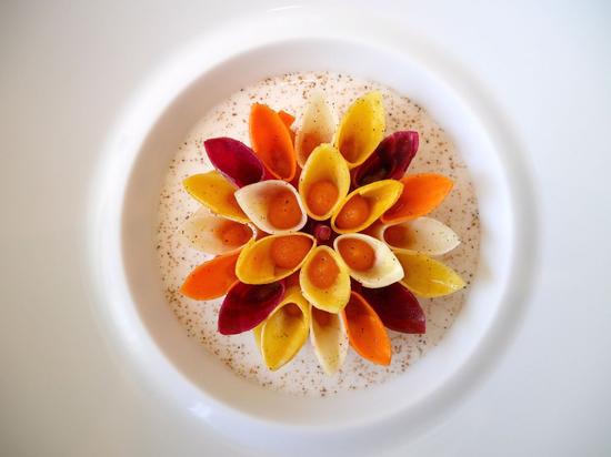 位于巴黎7区的L’Arpège餐厅早在1996年便获得米其林三星,与其他三星餐厅不同,这里的特色是有机菜,主厨Alain Passard对蔬菜料理进行了很多创新。包含餐厅传奇菜肴冷热蛋的品尝菜单售价370欧元/位。