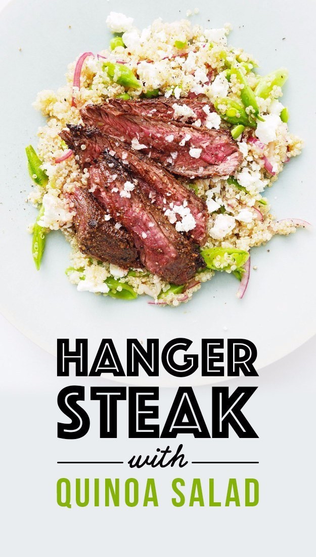 别看到牛排就觉得吃了要胖死。这道菜只有400卡。鲜嫩的牛腹肉配上松软的藜麦,既健康又美味。