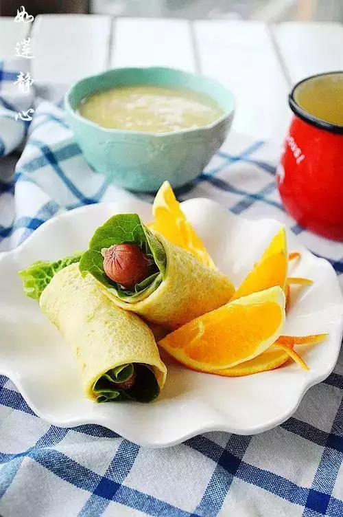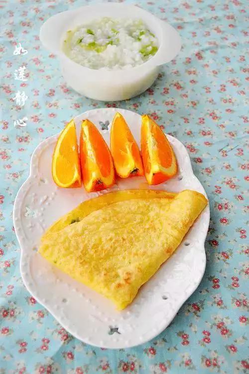 23、生菜粥+香葱蛋饼+橙
