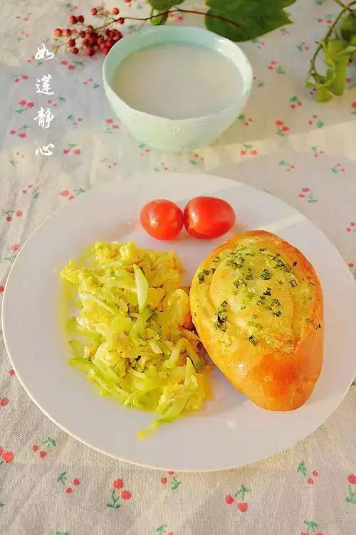 29、玉米粥+葱香面包+西葫芦炒蛋+圣女果