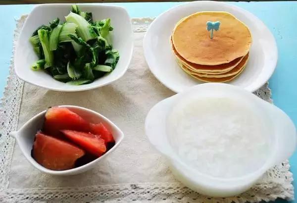 31、牛奶松饼+白粥(还有肉松忘拍了)+小白菜+紫布李