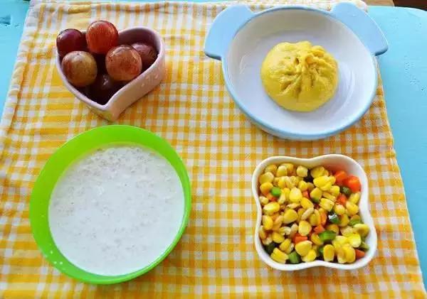 32、南瓜豆包+牛奶麦片+松籽玉米+提子