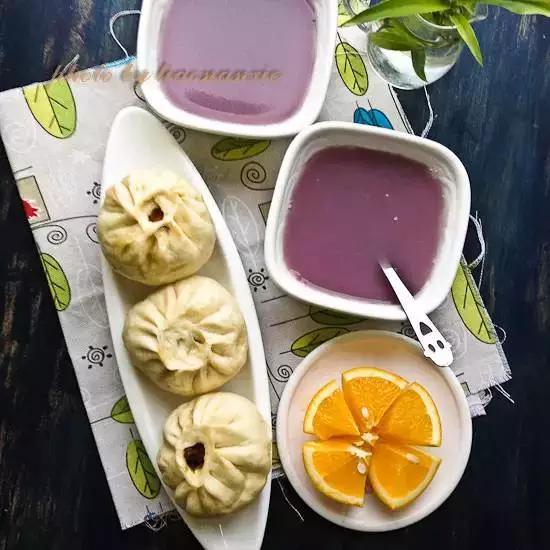 40、紫薯米糊+包子+橙