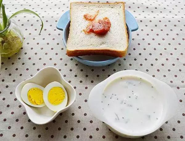 18、果酱面包+玉米+白煮蛋+黑芝麻糊+草莓