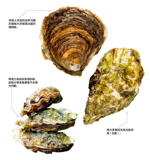 外表是判断生蚝品质的关键之一,蚝壳完整、没有泥沙是基本条件,至于是不是上品,那些“寄宿”蚝壳上的细小贝类则是风向标:如果它们坚固到用手指用力拨弄也不脱落(说明这些贝类是鲜活的),甚至蚝壳上仍生长着些许细丝状的坚韧海藻,说明这只蚝出海之后被照顾得非常周到。