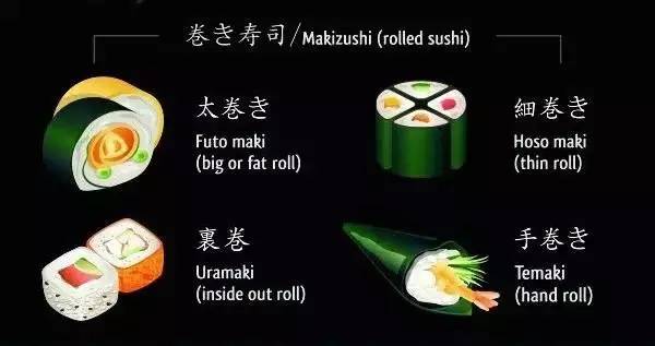 卷寿司又可分太卷、细卷、里卷、手卷。