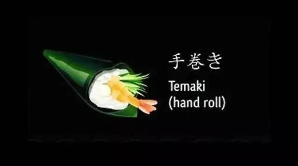 手卷是把寿司卷成圆锥体状的一种卷寿司。相传十八世纪时的日本赌徒终日流连赌场,为了方便携带,便把金枪鱼肉放进饭中,并用海苔卷起来,这样不仅能愉快地吃寿司,又可免去米饭黏手和扑克牌的尴尬。