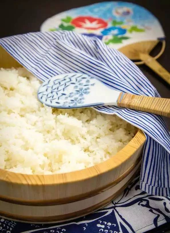 寿司米最理想的配比是珍珠米与水1:1煮成饭,盐、糖、醋按1:5:10的比例调成饭醋即寿司醋,最后再按1:5的比例混匀饭醋和寿司饭。
