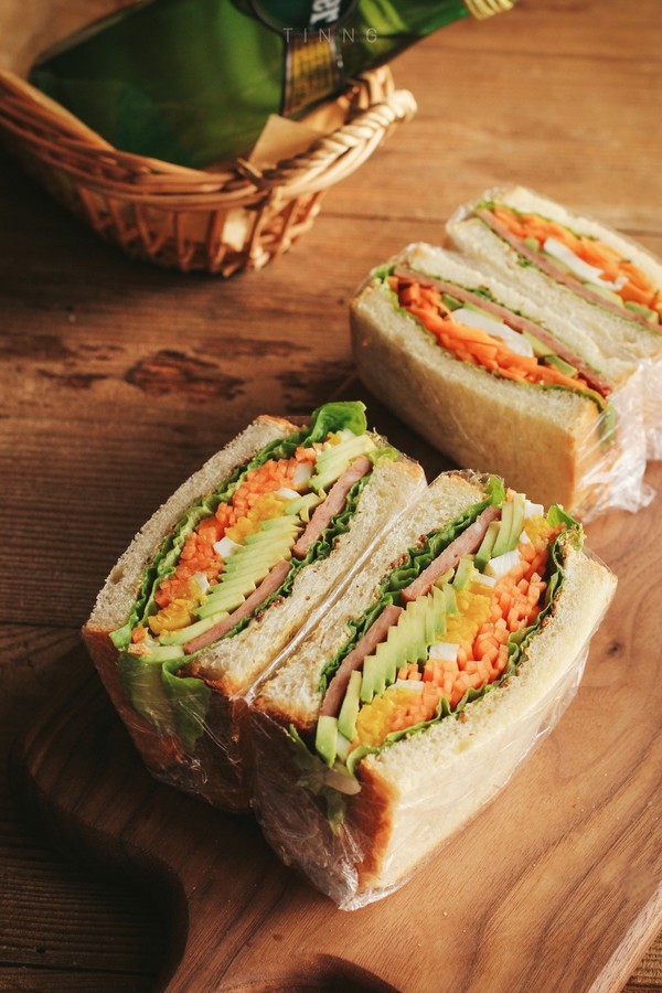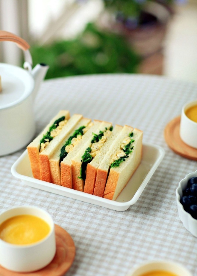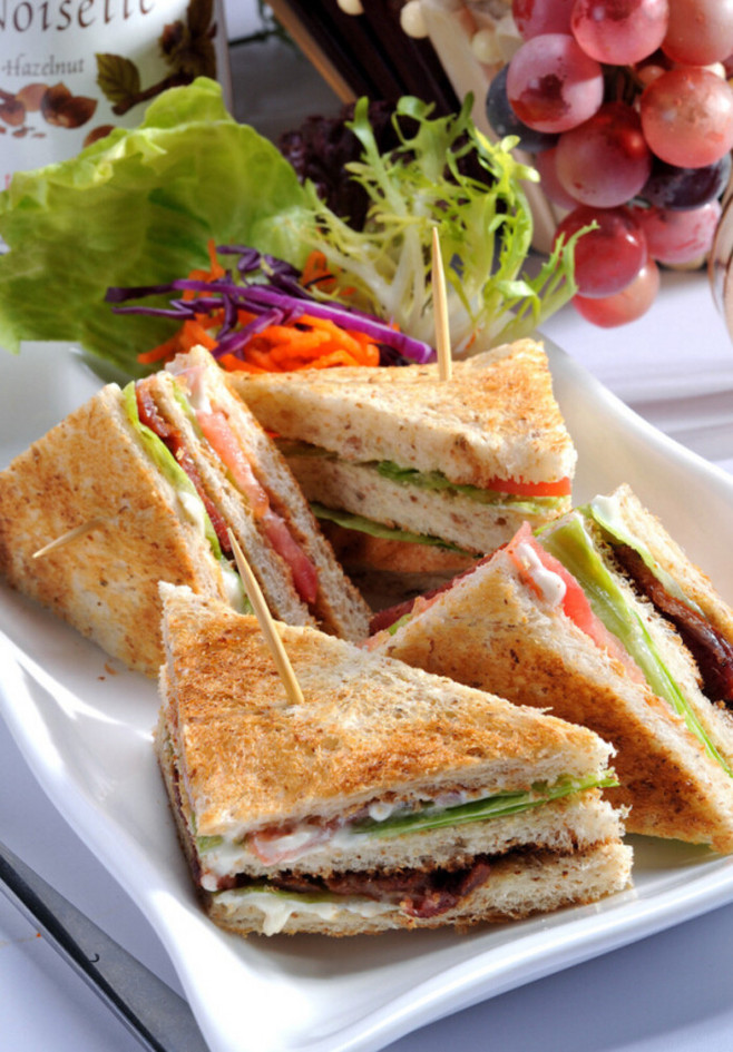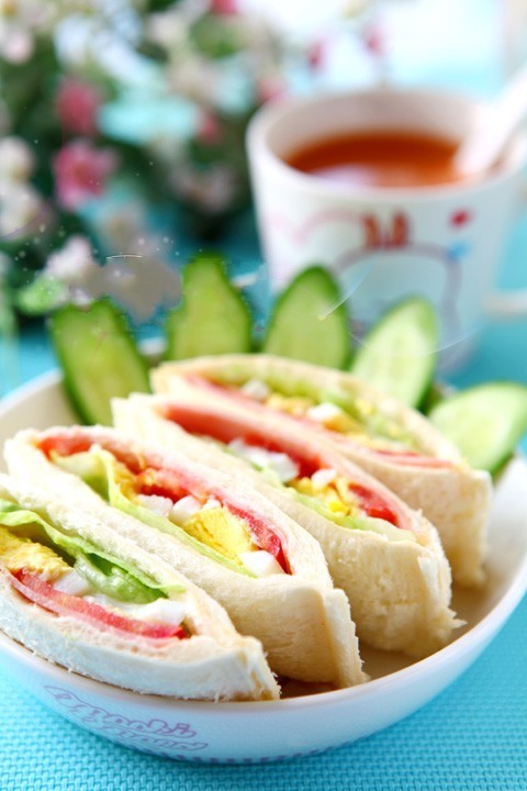 来一份三明治吧 鸡蛋 培根 生菜配吐司 番茄 吞拿鱼 小黄瓜 什么都可以加 搭配起来味道也很赞哦 简直是一份营养无比的早餐