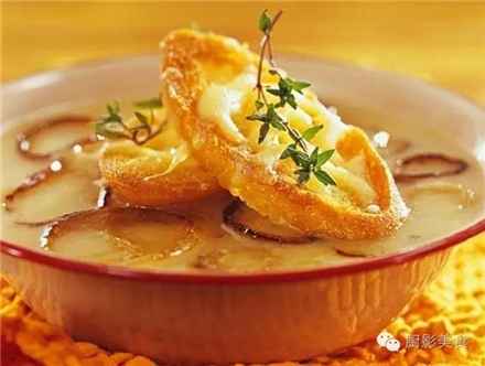 洋葱汤是法国最受欢迎的菜式之一,其历史可以追溯到18世纪。据说有一次,国王路易十五上山打猎迷失方向,直到深夜才找到路径回到宿营地。当时的他又累又饿,营地却只剩下一些奶酪、洋葱和几片干面包。无奈之下,他就将这些材料混合在一起煮了一碗汤,一尝之下,却发现味道出乎意料的好。从此洋葱汤就成为了经典佳肴,得以流传至今并传到民间。