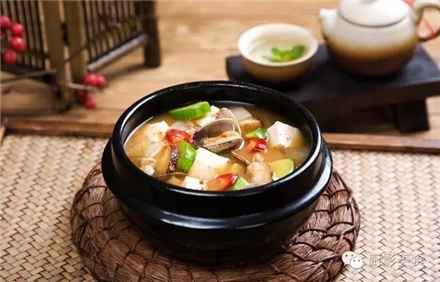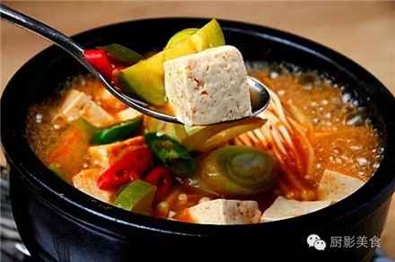 大酱汤是韩国特色料理。在韩剧中经常可以看到几个人围着一锅热腾腾的大酱汤,边喝边发出享受的赞叹声,看他们那样子,真让人觉得大酱汤是世间的绝顶美味了!其实,所谓的大酱汤非常简单,主要就是用猪肉、土豆、洋葱之类的各种食材加上韩国大酱来煮制的。据说经常喝大酱汤,还有降低胃病发病率和预防乳腺癌的作用呢!当然,大酱汤对韩国人来说十分美味,但对于国人来说就不一定对胃口了,其味道究竟如何,还是见仁见智,需要自己品尝过才能下结论了。