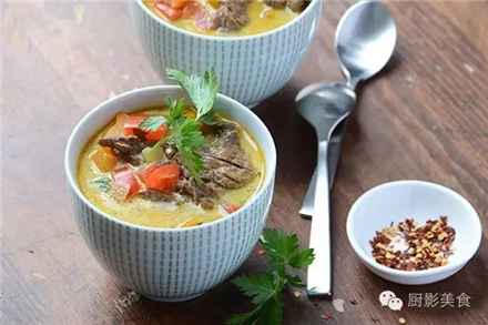不要以为只有东南亚喜欢咖喱,其实在许多国家,咖喱都是十分常见的调味品。美国更是将一道咖喱牛肉汤做的出神入化,在全世界都非常有名。牛肉、土豆、洋葱都是很普通的食材,可是加入一点咖喱,马上起了画龙点睛的作用。炖好的咖喱牛肉汤金黄香浓,牛肉酥烂,土豆绵软,实在美味。