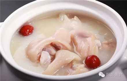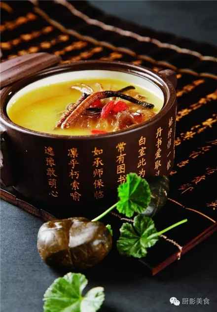 十全大补汤起源于宋朝。宋朝的皇帝非常重视健康,让各地的老百姓向朝廷献医书或医方,然后命令太医局医官整理出书,于是就有了我国第一部由国家颁布的成药方典《太平惠民和剂局方》。十全大补汤就是其中一个流传较广的方子。此汤加入人参、虫草、白术、枸杞、茯苓、炙甘草、熟地、白芍、当归、川芎、黄芪、肉桂10 味中药,五味小料,五味调料,加鸡、鸭、鹅、肚、排骨、肘子、鹿鞭、辽参、花胶等细火炖制而成,既是一道咸鲜味浓的汤菜,又是一款药膳,对身体有较好的滋补作用。气血不足、久病虚耗、术后调理都可饮用此汤滋养身体。