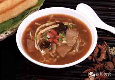 胡辣汤是用骨头汤做底汤,加入由多种天然中草药按比例配制的汤料及胡椒、辣椒等调味料制成的,它比较适合北方人的口味,汤汁粘稠、麻辣鲜香、肉烂汤鲜,喝的时候稍微淋点麻油、香醋,真是香、滑、绵、润,可口极了。
