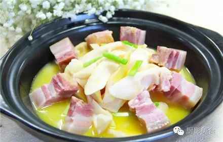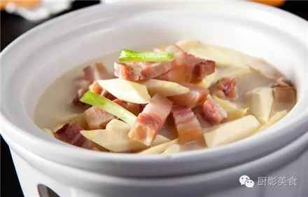 腌笃鲜是上海本帮菜,苏帮菜,杭帮菜中具有代表性的菜色之一。感谢你的阅读,我们的微信号是厨影美食,请加关注哦!更多精彩内容请关注微信公众号“厨影美食”。在《国宴与家宴》一书里,作者写道:“所谓高汤,基本上是老母鸡和老火腿慢火熬出来的,不过高汤之王则是那一锅纯正的腌笃鲜。”所谓“腌”,指的是腌制过的咸肉,以金华火腿为上;“鲜”则指新鲜的猪肉或排骨、蹄髈和新鲜的竹笋。“笃”则是上海话中小火慢炖的意思。“腌笃鲜”当然就是用腌肉、鲜肉和笋一起炖的汤了。笋的鲜味自不必说,而腌制的鲜肉经过时间的打磨产生了特殊的腊香味,再加上鲜肉的那一丝新鲜滋味,三者叠加在一起,无需任何调料,已经美味的无以复加,无愧于“高汤之王”的称号。