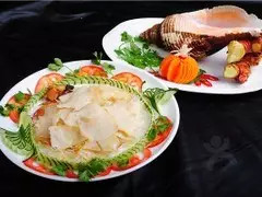 腌则以火腿为代表。金华火腿中的肥瘦部分,一小块可以片成四百片,香港的华丰烧腊店中可以买到。
