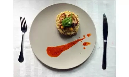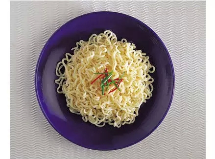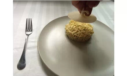 7. 这里有个要点,需要模具。拿个小杯子就好,把方便面满满的塞进去,压实,然后扣在盘子上。