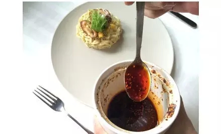 12. 本来想用方便面汤的,后来灵机一动换用了油辣椒。