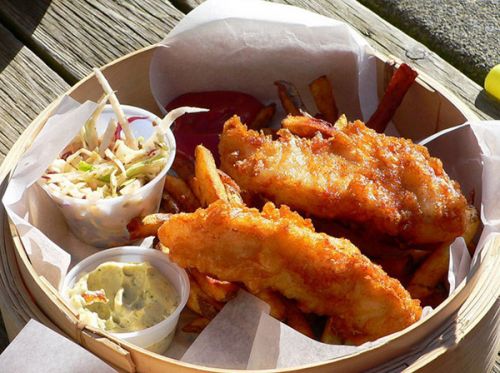 在英国任何一个小镇上,你都可以看到挂着fish&chips招牌的小铺子。通常这种小铺门脸不大,里面只有一张柜台。如果走近门口,你会闻见一股油炸食物的香气,其中明显的是鱼的味道。其实炸鱼和炸薯条被独立经营了若干年,直到19世纪60年代才有人把这两者结合起来,成为英国最流行的大众食品。