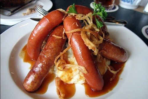 德国人是名副其实的“大块吃肉、大口喝酒”的民族——吃猪肉喝啤酒。德国人每人每年的猪肉消耗量为65公斤,居世界首位。由于偏好猪肉,大部分有名的德国菜都是猪肉制品。德国的食品最有名的红肠、香肠及火腿。他们制造的香肠种类起码有1500种以上,并且都是猪肉制品。
