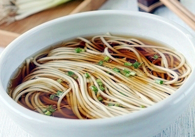 7 将面条放入汤碗中,撒上香葱末和青蒜末即可。