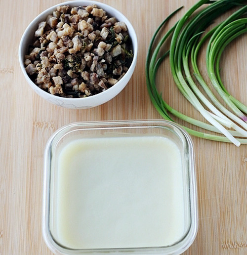 1 香葱、小蒜叶切碎备用;