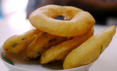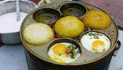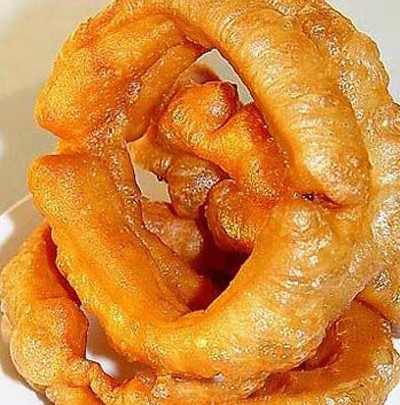 杭州的早餐是最具起源特色的,中国各地早餐最爱的油条就是出自这里了。传说那是杭州的百姓为了庆祝岳飞平反昭雪,便把秦桧和王氏捏成面人,两面人贴在一起,用筷子扯长了投在油锅里炸着吃,觉得只有这样才解恨,后来“油炸桧”或“炸桧”的说法便衍变成今日的油条了。如今杭州名吃“葱包桧”还能依稀辨出原始叫法的影子来。由此看出,杭州人民的想象力和创造力还是很丰富的,以至于延续到今日如此众多的美味小吃来。