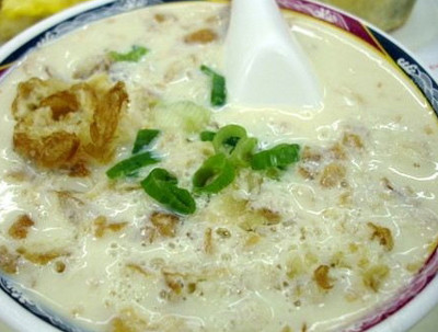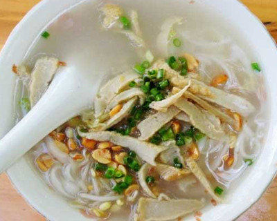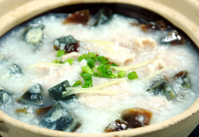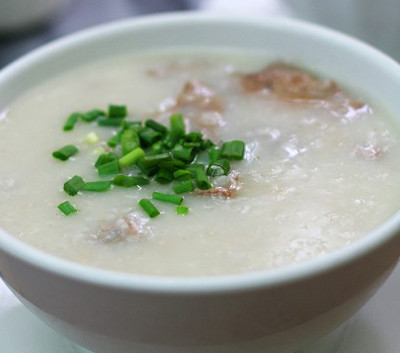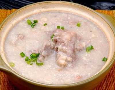 咸猪骨粥:用白酒和盐腌制洗净的猪骨后,用火里烘烤至干。用盐水煮熟黄豆后再炒干。将二者一同下锅熬粥至熟,出锅加入瓜片和香菜即可。呷一口便觉是米香味纯,汤底浓香。