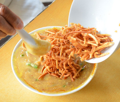 豆汁:是制作绿豆淀粉或粉丝的下脚用料,将绿豆长时间浸泡至可用手捻去皮,捞出加清水磨成细浆,最后倒入大缸内发酵,沉底的就为淀粉,上层飘浮的液体即为豆汁。