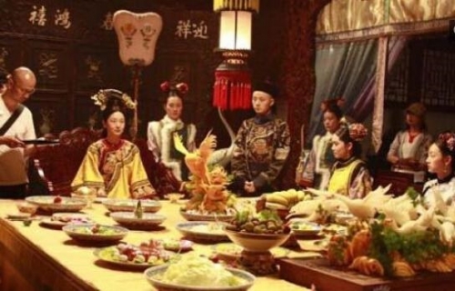 慈禧当政的时候,用膳与皇帝类同。每日两顿正餐,照规定需上一百碗不同的菜肴。另有两次“小吃”,至少也有二十碗菜,平常总在四十至五十碗左右。这么多的菜,除了靠近的几种,其他的菜慈禧很少动,剩下的菜待她用餐完毕,便一齐撤下。这些菜除了扔掉,或是由女官、宫女、高级太监等依次取食之外,其中十之八九还是完完整整的,像供祖先撤下来的祭菜一样。