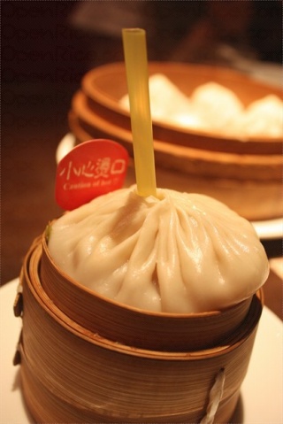 吃汤包最为考验女人们的吃相够不够优雅——蒸熟的汤包雪白晶莹,皮薄如纸,汤包不能张嘴就咬,否则汤汁会溅一身。君不见当地的扬州美女都是用齿尖小心地在汤包上方细细咬破一点小孔,待汤汁稍冻后,慢慢用吸管吸尽汤汁,加点陈醋进去,最后一口送到嘴里。一桌女人对着一个包子,慢慢地品味,在古色古香的环境,窗外是幽静的河水,岸边是正在吐绿的杨柳,生活忽然变得精致和缓慢起来。