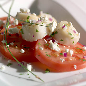 1.将番茄和奶酪切片