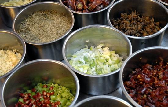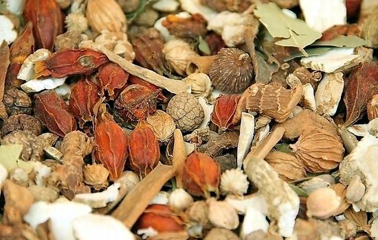十三香:“十三香”就是指13种各具特色香味的中草药物,包括紫蔻、砂仁、肉蔻、肉桂、丁香、花椒、大料、小茴香、木香、白芷、三奈、良姜、干姜等。