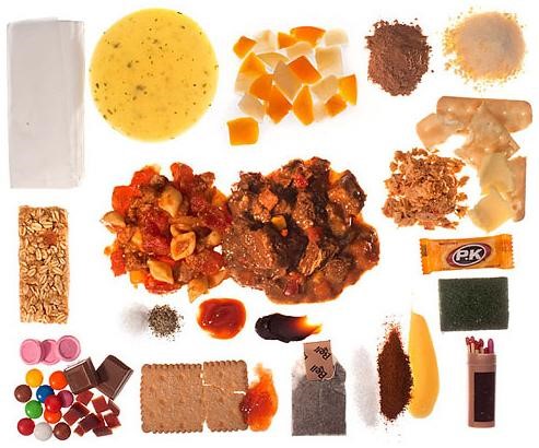 菠萝猪肉饭,豆焖肉,鹿肉,鱼汤,香草布丁,饼干,水果果冻,水果奶油杏仁糖,焦糖,巧克力,速溶柠檬粉,茶包,速溶咖啡,热巧克力粉,糖,盐巴,辣椒粉,纸巾