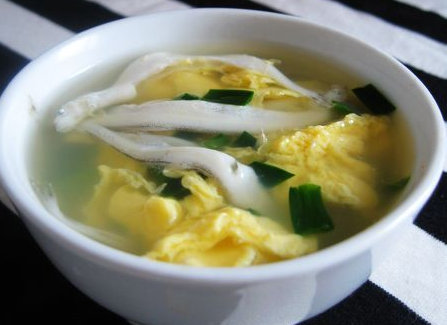 做法:银鱼、姜切丝、韭菜切碎、鸡蛋放入碗中打散备用。锅中放水、姜丝、料酒、盐、银鱼煮开。 放入韭菜,出锅前淋几滴香油即可。