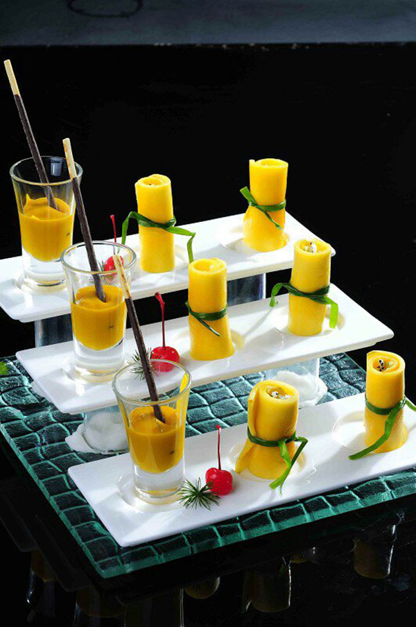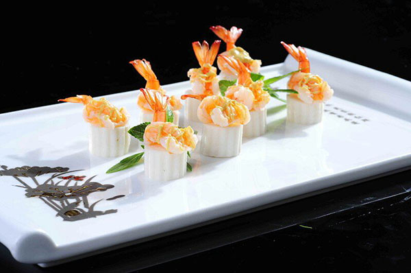 眼下许多意境菜,受西方传统绘画的影响,其菜品的装盘艺术也有许多线条、圆点的元素。意境菜很重要的一点就是造型更加灵动、富有变化,巧妙的处理空白、疏密之间的关系。通过创新和想象提高菜品的品味,从而把菜做得有生命,从而满足食客的品味需求。“意境菜现在还是个很新鲜的词,我觉得它更像是一中以食物的表演艺术,从视觉味觉上都令人耳一新。意境菜中可包容日式餐饮的精美,也有西式餐饮的优雅,还有中餐的好口味。