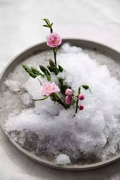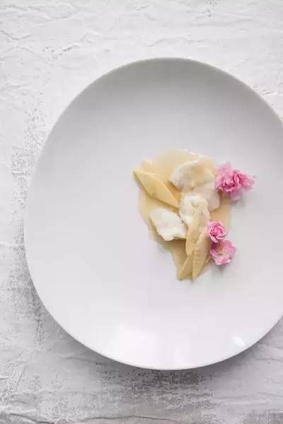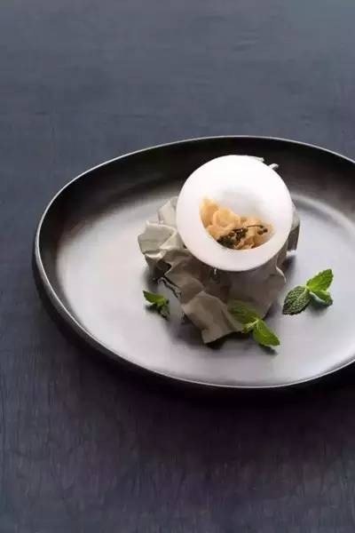 “渭城朝雨浥轻尘,客舍青青柳色新。”出自唐代诗人王维的《送元二使安西》,令人瞬间体会出这道菜的意境。如插花般静谧的甜点,令人瞬间感受到了春去夏至前的一丝清凉。清爽沁肺、冰甜爽口的龙牙燕窝,搭配用柠檬汁调味的牛油果泥,令人在口中瞬间掀起了一阵阵无法言语的高潮;敲碎用液氮冷却的苹果柠檬冰沙制成的花艺壳,搭配蛋白饼真是意境十足;顺滑冰稠的燕窝搭配清新冰霜的外壳,真是一个甜点的交响乐,各种美味在脑间爆发混响,美味至极!而这道甜点不但健康养颜,又不甜腻,实在是甜点中的最佳之选!