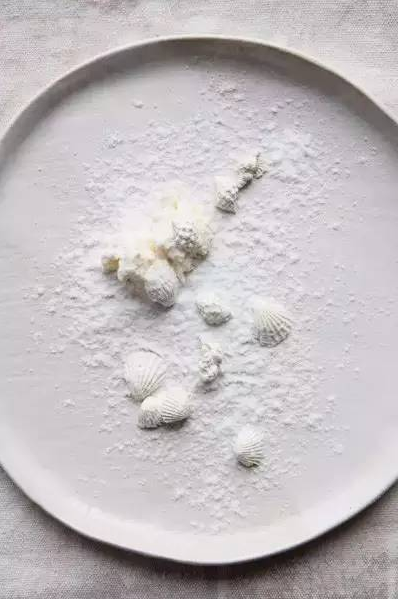 用一种色彩来制作甜点本身就是一种挑战。白到素雅、恬静,然而内涵却超乎想像!要知道,每一个白贝壳都含有不同味道的馅料,海盐、芥末、咖啡、橙子、辣椒、黑松露等十多种口味的白巧克力贝壳,简直让人惊呆了!尤其是搭配由松露油制成的白珍珠,简直是令人兴奋的泪奔,美食性高潮就是对这道菜的完美诠释!一层层不同的味道,令你的味蕾彻底释放,再搭配松软香糯的白奶酪制成的“珊瑚”,把这道菜起名叫做“踏雪寻贝”绝对是再合适不过了!