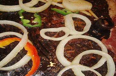 韩国烤肉腌制原料时,一般都要用“五辣”原料,即辣椒、大蒜、洋葱、姜、葱。“辣”是韩国烧烤的主要口味,在腌汁和蘸汁的作用下,食用时会呈现出“五味”,即甜、辣、咸、酸、苦,其中的蘸汁主要起补味的作用。韩国烧烤的原料必须经过腌制码味。腌渍时,一般还要加入一些水果和洋葱,使成菜有香而不腻的感觉。此外,韩国烧烤在烤制过程中不再调味,只是在食用时才用蘸汁来补味。