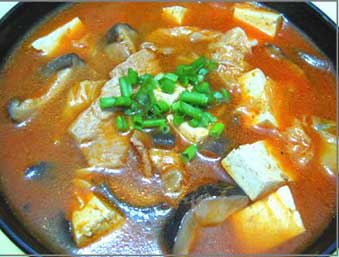 韩式大酱汤有热汤、凉汤两种。凉汤是用大酱调成汤,再放入黄瓜丝、辣椒酱、葱花等作料而成。三伏天喝凉汤,去暑解热。大酱原料黄豆中含有的异戊醛是天然的植物激素,它能预防乳腺癌。