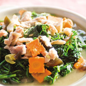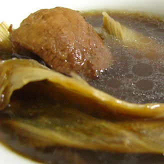 方法:清水将罗汉果、白菜干洗净,猪肉洗净切片,一起放入煲中,武火30分钟,文火1小时。
