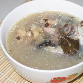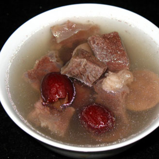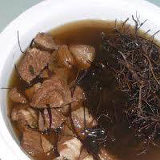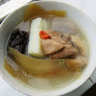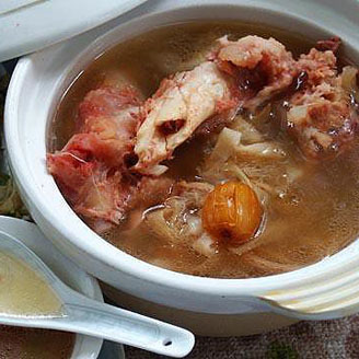 原料:猪龙骨500克,巴戟15克、杜仲10克、扁豆10克、生姜2片