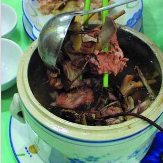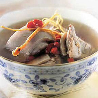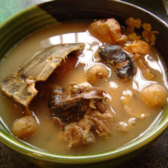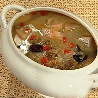 功能:从药性而言,团鱼偏于凉,羊肉偏于温,两者相合则药性较为平和,共具滋阴养阳、补气养血,对气血阴阳均有滋益之功,对于产后母体无明显病变者补益之效尤佳;对于产后气血虚弱、乳汁量少、恶露不止、虚劳羸瘦、腰膝酸软等均有一定治疗作用。