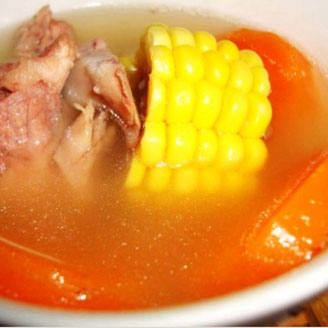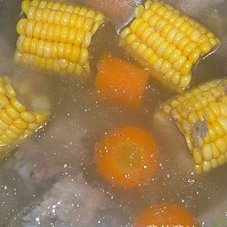 原材料:玉米棒150克,排骨250克,红萝卜50克,生姜、红枣少许