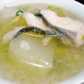 方法:鲩鱼去鳞洗净,生油下锅煎香;冬瓜去皮切粗块,加生姜清水煲2小时。