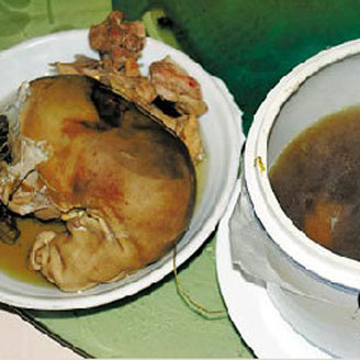 方法:鱼头切开洗净淤血,所有洗净材料一起放入煲中,大火煲开,小火2小时。