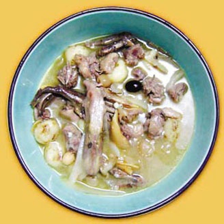 方法:老桑枝洗净,并稍浸片刻;雌鸡宰净,去毛及内脏,洗净。与生姜一起放进瓦煲内,加入清水2500毫升(约10碗水量),先用武火煲沸后,改用文火煲约2个小时,此量可供
