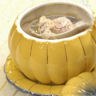 功效:杏仁能润肺化痰、止咳平喘,川贝能润肺化痰、清热止咳,鹧鸪补中消痰、开胃和中。此汤为清润肺燥之食疗佳品,可用于慢性支气管炎、小儿百日咳等症。